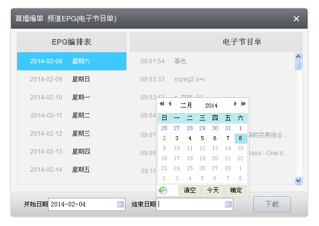 | EPG下载 | 频道安装完成系统自动生成EPG,可下载选定日期的EPG(.xml格式)。 | |